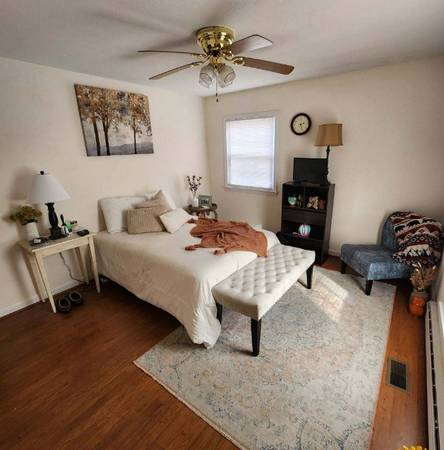 3 bedroom, 1 and a half baths, Master bedroom has walk in closet and half bath. Fenced in back yard with storage building. Front porch and backyard furniture will be included. Has carport storage area. Ceiling fan, stove, refrigerator, microwave and cart and washer and dryer connectors included. Rooms recently painted. beautiful hardwood floors. Conveniently located in Graham NC. A couple of minutes to I-40/85 and Hwy 54. 25 minutes to UNC Chapel Hill hospital. 25 to 30 minutes to Duke Hospital and Moses Cone Hospital. 2 minutes from grocery stores, restaurants and shopping. Monthly rent $1795. Can furnish the home for additional price. Available December 22nd.