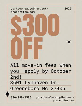 🤩$300 off move in cost for our beautiful townhomes when you apply by October 2nd!🤩