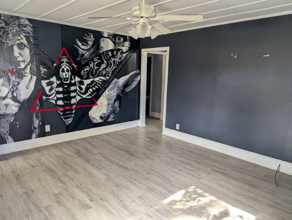 This former home of a well known artist features a fun living space with 2 bedrooms, a large dining/living room, living room, and perfectly sized kitchen. There is a washer and dryer with it's own room. And, the backyard in fenced in and well maintained. This is the perfect home for a family with a pet.
