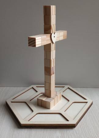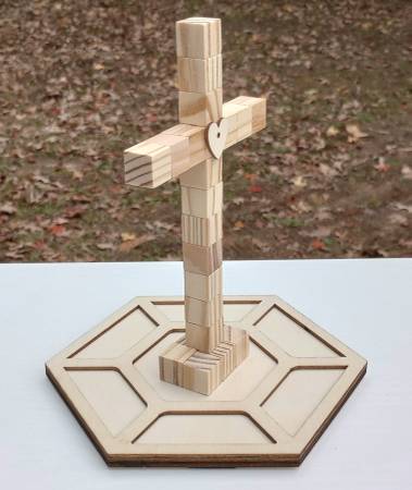 One-of-kind Custom-made Cross On Hexagon-shaped Base Approx. 7" tall • NEW