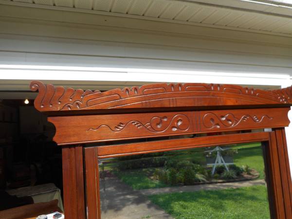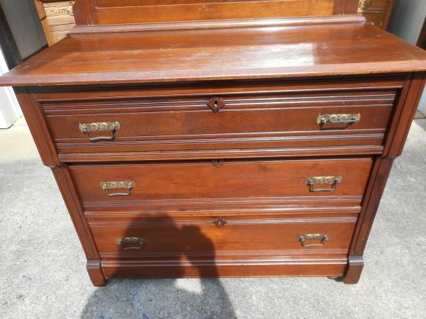 Very nice walnut dresser with mirror. Original finish and hardware. Drawers work well. Measures 40wx74hx19d.