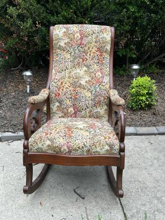 Beautiful antique sofa and rocker set in great condition. Upholstery has no tears or rips and colors are vibrant. Much nicer than pictures show. Sofa legs need a little touchup but otherwise almost like new. You must see to truly appreciate. Asking $950 or best offer. Seller does not prepare or pay shipping. Local pick up. Local delivery is available for an additional charge. Needs a new home, please make us an offer. Moving soon.