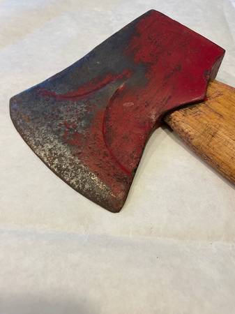 Belknap Bluegrass axe as found. Good stencil, under the red paint. It is 36 inches in length. Handle is original and does not need to be replaced. No deep pitting, only some surface rust. Local...