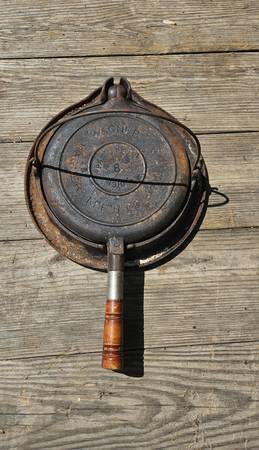 Wagner #8 Cast Iron Waffle Iron With Wood Handles And Base Pat. Feb. 1910. Must Pick Up In Haw River Off Hwy 54 Cash Only 1st Come 1st Serve No Holds!