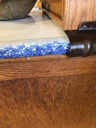 Features include: White pull out porcelain work surface with an amazing BLUE speckled