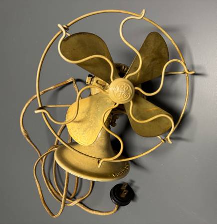 Original circa 1920s 6" GE series G desk fan in good condition. The cage is made of steel and the blades are brass. This is the cream enamel colored model (see where I have highlighted that in the old advertisements included in the pictures).