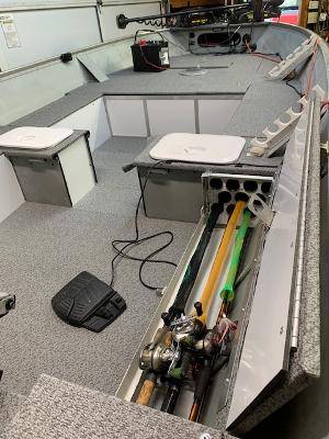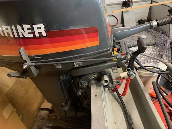 Aluminum vee hull 16 ft Sea Nymph, tiller, electric start 40 hp Yamaha 6E9 very good compression, console, aluminum composite interior, casting deck, livewell, two Minn Kotas, two fish finders, Deckhand 40, two batteries under deck, two bank charger, storage, roller trailer, hinged trailer tongue. Not used since the work was done. With manuals and original boxes.
