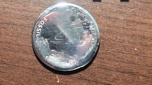 This Fossil watch is working but the back of the casing was damaged and will not snap back in place. It has 2 additional links for the bracelet. In addition there is a crack in the crystal.