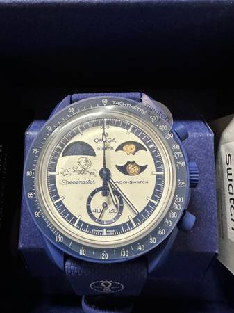 Brand new limited edition Omega/Swatch Snoopy moon watch. Never been worn, 2025 issue. All books and box. Very limited and special edition from Omega and Swatch,Swiss made with Omega speed master...