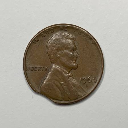 A 1964 Lincoln Memorial Cent minted with a curved clipped planchet error from the U.S. Mint. I meet at the Food Lion in Randleman, NC if interested. #Error #coins