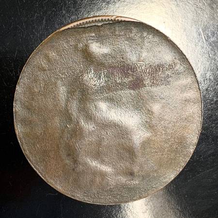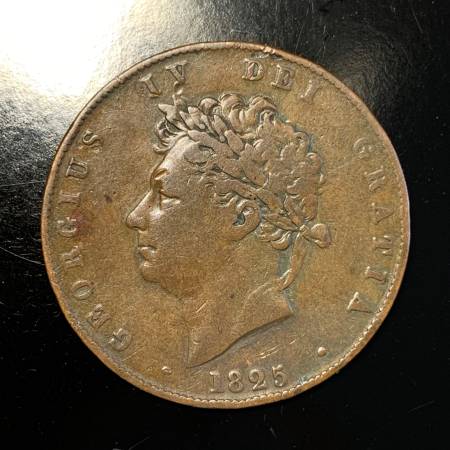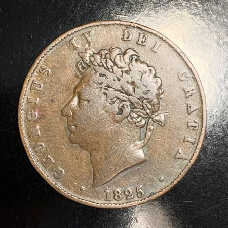 Most likely a one-of-a-kind 1st year design 1825 Half Penny with a super low mintage of only 215,000 coins, where the reverse has split off from the obverse, leaving only a ghost image of Britannia remaining. I meet at the Food Lion in Randleman, NC if interested.