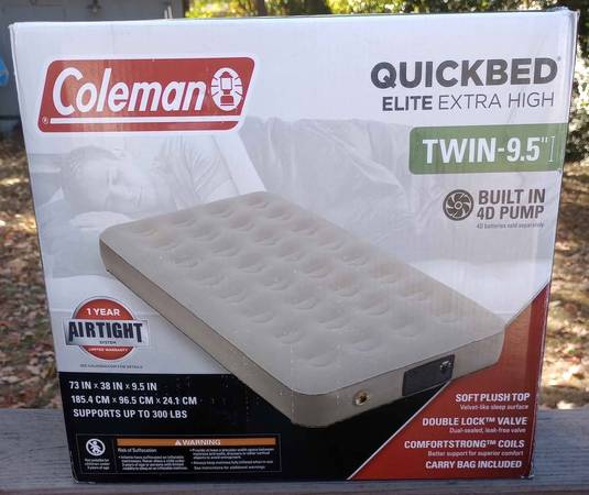 Coleman QuickBed Elite Extra-High Airbed w/Built-In Pump • Leak-Free w/Soft Plush Top & Carry Bag • Twin Size