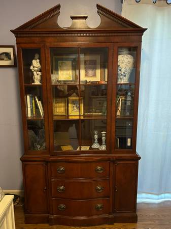 Beautiful wood display cabinet/china cabinet with glass doors. Excellent condition. Call or text:
