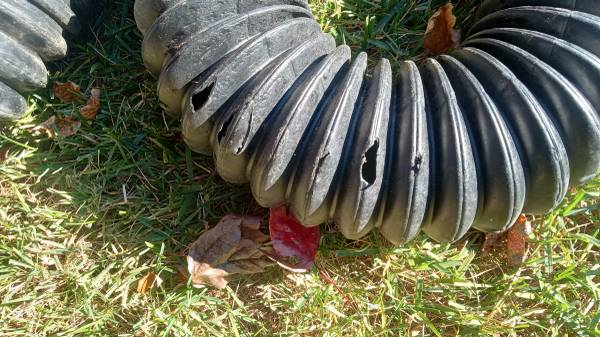 I have two 4" Corrugated Drain Tubes, each with end piece pop up drains on one end and 4" gutter attachments on the other. One is approximately 25' long and the other is about 20' long. The 25 foot has two areas were a shovel scraped, but can taped with drain tape or cut and coupled back together, but honestly, drain tape would seal backup. These are a few months old, but we decided to pulled them up and go with PVC pipe when we had concrete slabs poured at front and rear of house. The pop-ups alone are about $30 each new, so asking price is fair.