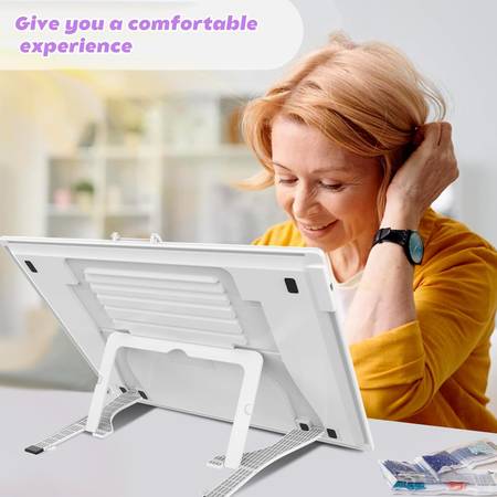 â—†[Built-in Foldable Stand and Magnetic Clip]--diamond art light board with the foldable multi-angle stand, you can always get a comfortable viewing angle while making. The strong 2.8-inch magnetic clip on top of the bright light box holds the 30*40cm diamond art canvas tightly.