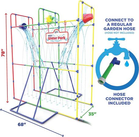 SECURE AND STRONG SUPPORT: Your water park sprinkler toy is ready to make a splash whenever you are. Built to last, this backyard waterpark provides endless fun. With sturdy supports, it resists bending, giving years of outdoor water fun.
