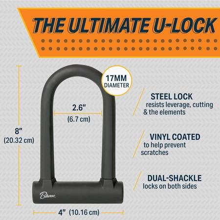 Heavy-Duty Protection - Unpickable 17mm steel U-lock with a silicone sleeve, hardened high-performance alloy steel, anti-theft that resists cutting, bolt-cutters, and pry bars.