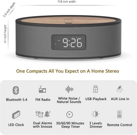 White noise/sounds machine, there are 9 sounds built-in, you can customize the sounds files easily on the TF (micro SD) card, 30/60/90 minutes sleep timer can be set.