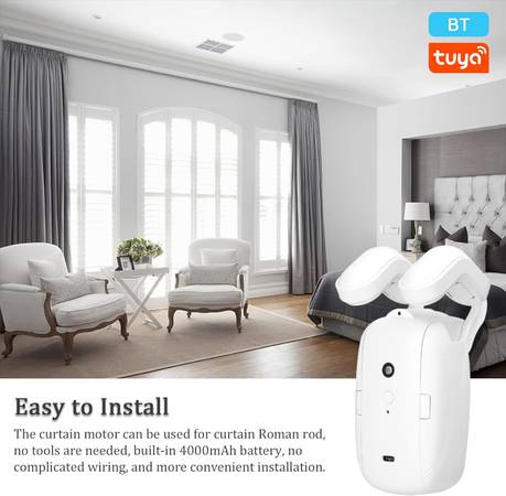 Easy to Install: The curtain motor can be used for curtain Roman rod, no tools are needed, built-in 4000mAh battery, no complicated wiring, and more convenient installation.