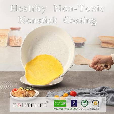 Eco-friendly Non-Stick Ceramic Coating & Super Easy to Clean - Our frying pan interior is coated by non-stick ceramic coating, SGS approved, 100% PFOA free. Require less oil or butter for cooking and minimal scrubbing for a spotless clean, giving you a healthier and more enjoyable at-home cooking experience.
