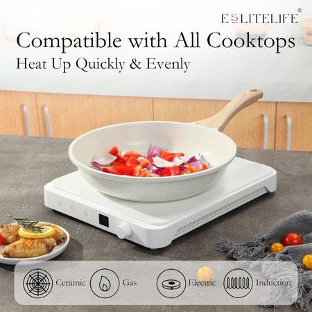 Widely & Easy to Use - Our nonstick frying pan can be used for any cooking needs, perfect for slide-off-the-pan eggs, sauteing veggies, flipping pancakes and more, the heat resistant bakelite handle are suitable for grasping and staying cooling while cooking. Time to upgrade your pots and pans and spruce up your kitchen decor!
