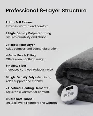 ăWeighted Heated BlanketăZonli 2-in-1 heated weighted blanket is a leading innovation that combines the benefits of a weighted blanket and an electric blanket. The ultra-soft 200 GSM flannel fabric provides a cozy and snug feel, making it perfect for lounging and resting, helping you achieve relaxation and a good night's sleep.