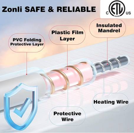 ăFast HeatingăWith 10 heating levels (86-120°F) and a 1 to 12-hour auto-off timer, the Zonli weighted heated blanket offers intelligent design and customizable warmth. The auto-off feature ensures the blanket powers off automatically for safety and energy efficiency. The constant temperature function ensures you experience continuous and stable warmth throughout use.