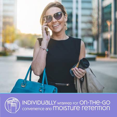 ON-THE-GO CONVENIENCE: Each wipe is individually wrapped for ultimate convenience and moisture retention compared to microfiber cleaning cloths. Perfect for travel, work, or school, these wipes fit effortlessly in purses, backpacks, and pockets.