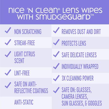 POWERFUL DUST & DIRT REMOVAL: Achieve crystal-clear lenses with Nice N' CLEAN SmudgeGuard technology, offering 3X the cleaning power of standard lens wipes. Perfect for eyeglasses, camera lenses, and more!