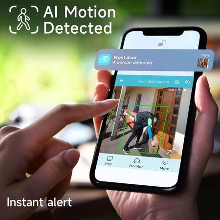 ćPIR Motion Detection & Real-time Alarm NotificationćEquipped with smart AI motion detection, this indoor camera can analyze and recognize people. When motion is detected, it sends instant alarm notifications, records alarm video, and audio, and activates an alarm sound and spotlight to deter unwanted visitors. Customized Siren, flashing white light that allows you to drive away thieves and unwanted visitors.