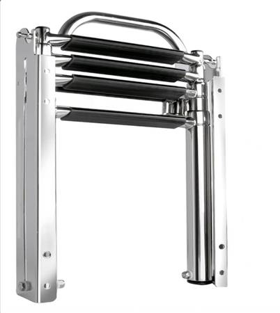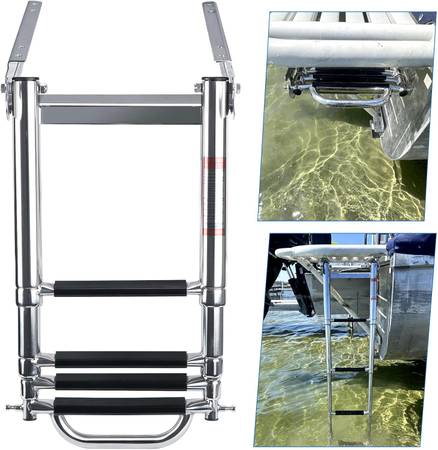 【Compact & Convenient】: The telescoping steps on this boat ladder fold quickly and effortlessly into the water for safe boarding. For storage, the low profile stainless steel steps fold compactly and also gives this boarding ladder a very sleek look.