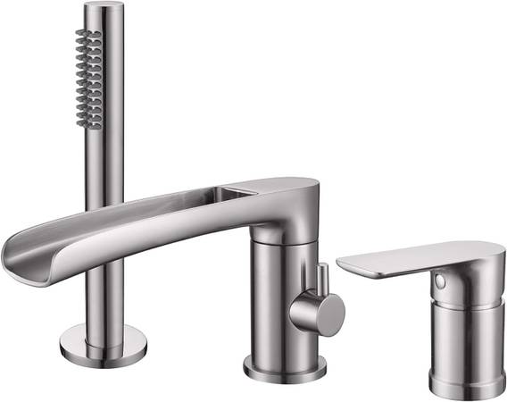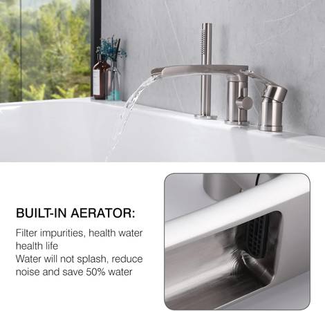 π₯γπππππ ππ ππππγ:The waterfall tub faucet constructed from the highest quality solid brass and finished in superior corrosion, rust-resistant & anti-fingerprints brushed nickel, suitable for installing in every roman bathtub