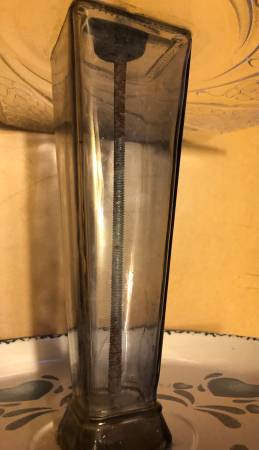 No issues. Well built. 13 inches High. 11 inch Radius An inch depth for feed or water on porcelain. Bottom tray. Top piece and middle are glass with a metal rod and nuts holding it together.