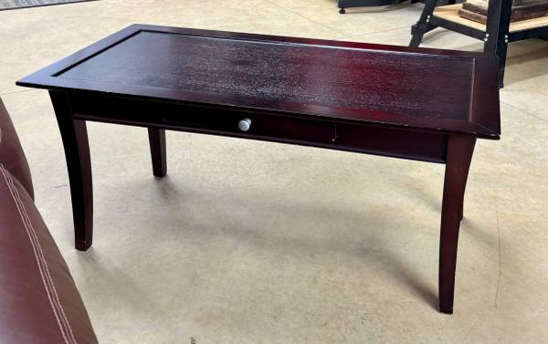 Dark brown wood coffee table with drawer in good condition for sale. Please call or text to arrange viewing and pick up. Thanks!