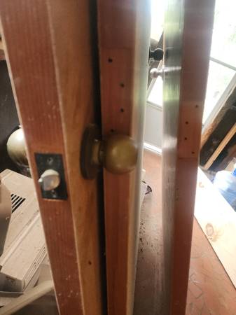3 SOLID CORE DOORS FROM COMMERCIAL OFFICE SPACE. USED. SLIGHTLY DAMAGED AROUND BOTOM AND CORNERS. I CAN PROVIDE MORE DETAILED PICS UPON REQUEST. NO KEYS FOR DOOR HANDLES AND NO HINGES.