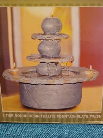 Indoor/outdoor Slate Stone Fountain from Kirkland Home. Working Heavy duty 6' Cord & Pump included. Used ONCE for a wedding. Includes a decorative added topper piece to extend height, if preferred.