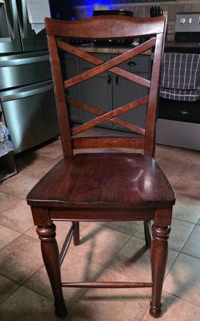 Bar height kitchen table with 5 chairs. 54x54 square. Some scratches and nicks but still a great table. $400/obo