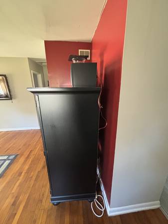 Black Armoire/Entertainment Cabinet Width: 42.5" Height: 62" Depth: 22" Solid wood doors. $50