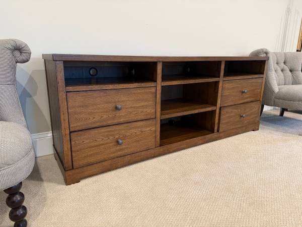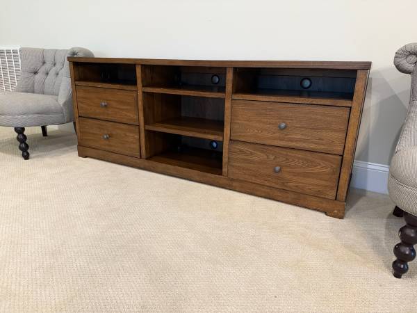 For sale is one used, good condition BASSETT media console with drawers and cable grommets. Tobacco wood finish. Can pickup weekdays and weekends, any time of day. Will need to provide your own...