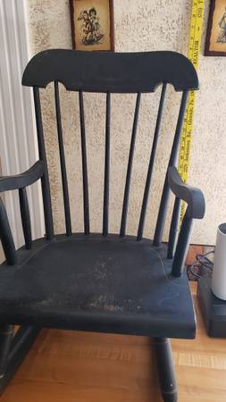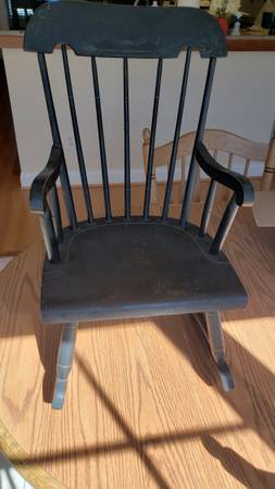 Vintage (70+ years old) solid hardwook child's rocker. No identifying manufacturer marks, but may have been made by Tell City. Very stable, but paint is worn and stencils are barely visible. Approx....