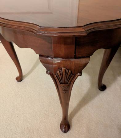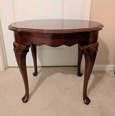 Like new condition. High end Ethan Allen solid cherry end table. Queen Anne legs. Sturdy and durable. Delivery available if needed. Text me thanks. Dimension: 28"W. 22.5"D. 23"H