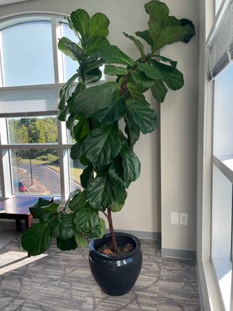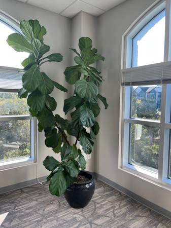 lush and Vibrant Fiddle Fig Plant. Plant is approximately 8-9ft from the base. Flower pot included.