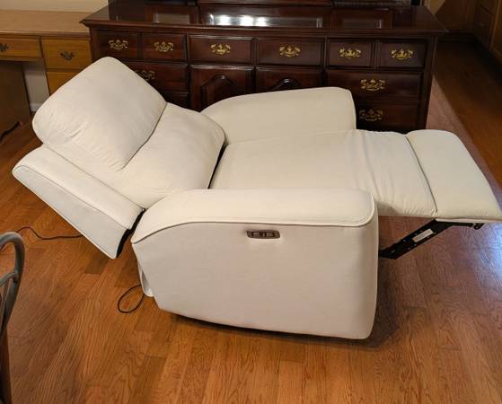 Almost new condition. Less than 2 months old but never used. Modern aesthetic design of enough wide and deep seat for big and tall people.Overstuffed comfort. Space saving Wall Recline. USB-A Port along with recline buttons. Smooth and quiet motor driving. Sturdy and durable. Delivery available if needed. Text me thanks.