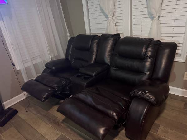 Two seat recliners was cupholders and hidden pocket. The sectional is in good condition both recliners still work. Probably have about one. $150 for the two seater.