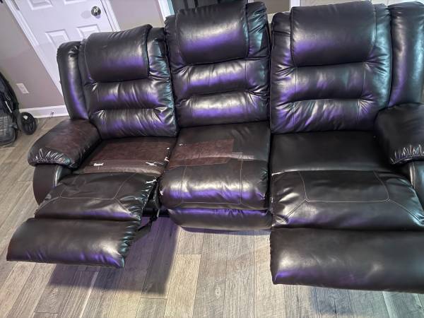 The second is a three seater couch with two recliners. There is some damage to the leather, but you can always buy tape to fix that as I have done the recliners work great in like new condition. $100 for the three seater with two recliners.