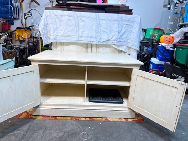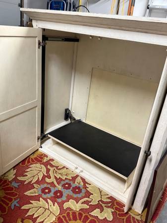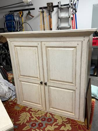 Thomasville 2 piece armoir Cabinet base is 53.5 in ( length), 25 in (width) x 31 in (height). Hutch: 56.5 in (length including top molding), 51 in ( length not including molding) x 24.5 in (width) x...