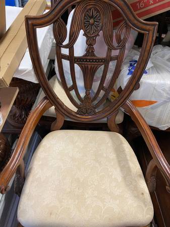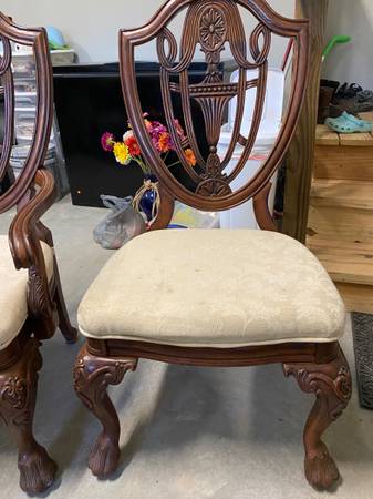 Big kitchen wood table with 9 chairs. Currently, it is not put together. $450 or best offer
