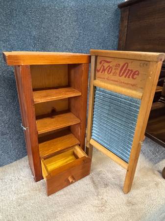 Unique, handmade cabinet with a washboard made by Carolina Washboard Company.