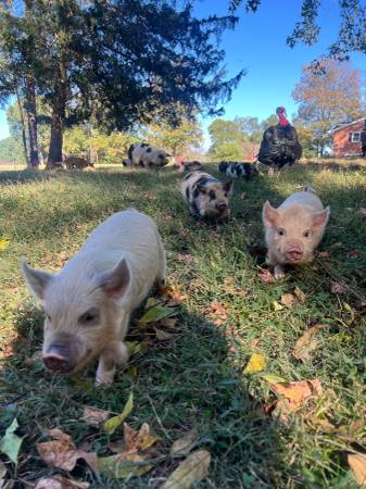 We have several Kunekune piglets available! They were born on August 11. All have double wattles. They are all very friendly and used to being handled. They make great pets as they are very calm and easy to take care of. Some love them for their great lard and marbled red meat. I have 1 castrated male left and the rest are all females. The boar is registered and the sow is on site and is very friendly. Asking $125. Thanks!