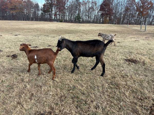 2/ Weather Goats and 1 Brown nanny goat 10 months old and spotted weather is 10 months old Black weather is $200.00 and the other 2 are $100.00 each Cash Sale only call or text no email 336 two Six...